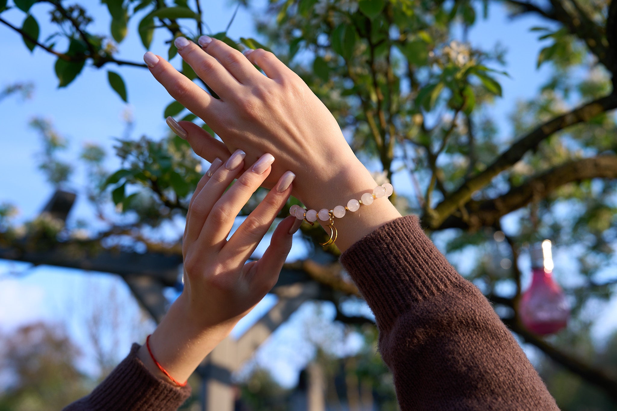 Kette aus Rosenquarz, Achat & Quarz